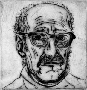 Bild links: Selbstbildnis – Radierung aus dem Jahr 1974